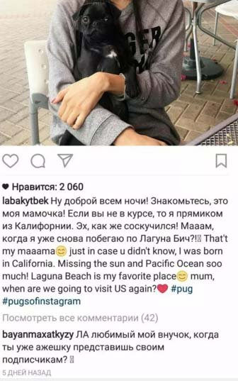 Продюсердің қызы Айсәуле Бақытбектің LA атты иті жақында Instagram желісіне тіркелген болатын.