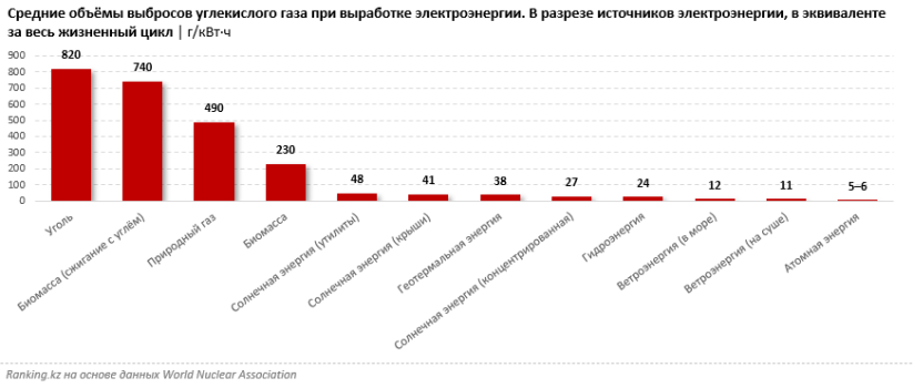 Для Казахстана переход на низкоуглеродные источники энергии является максимально актуальным, так как страна занимает вторую строчку в мире по наибольшему объёму выбросов парниковых газов. По итогам 2023 года объём выбросов CO₂ в РК составил 821 г/кВт·ч. Причина в том, что более 77% электроэнергии в стране вырабатывается на теплоэлектростанциях (ТЭС), которые работают на угле.