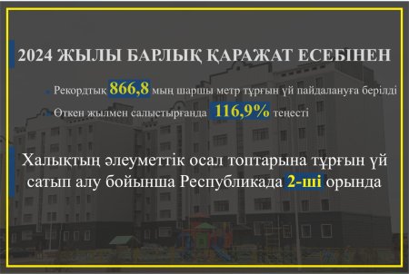 Бұл мемлекет басшысы Жолдауында айтылған әрбір адамды 30 шаршы метр баспанамен қамтамасыз ету жоспарын ойдағыдай жүзеге асырудың айқын бағдары деп білеміз.