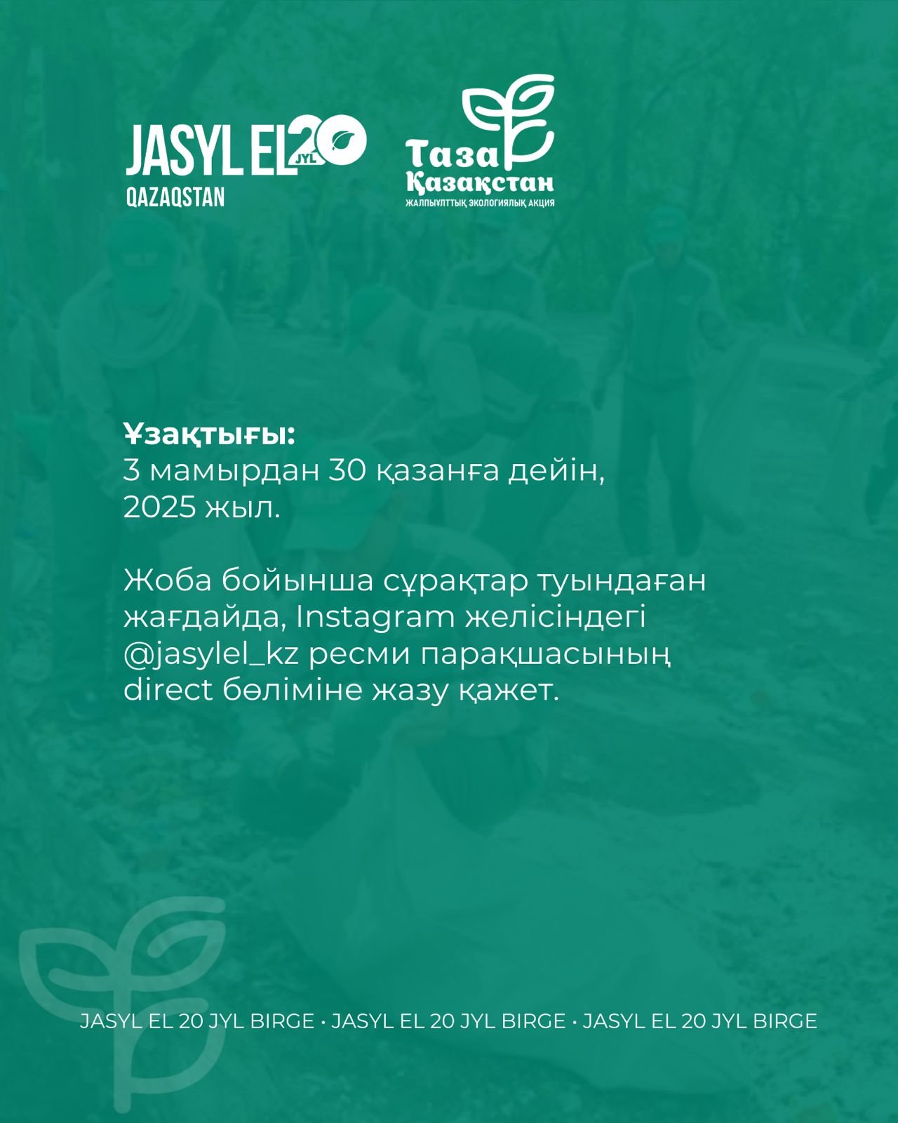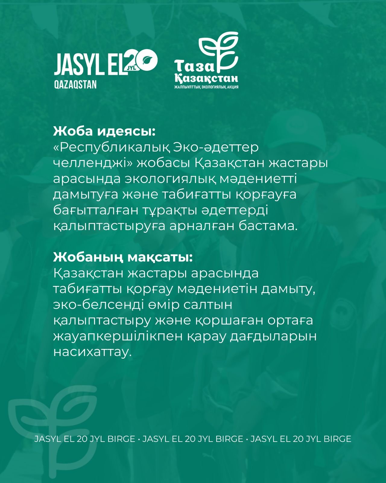 Бұл челлендж – Қазақстан жастары арасында экологиялық мәдениетті дамытуға, тұрақты әдеттерді қалыптастыруға, сондай-ақ табиғатты аялауға арналған ерекше бастама.