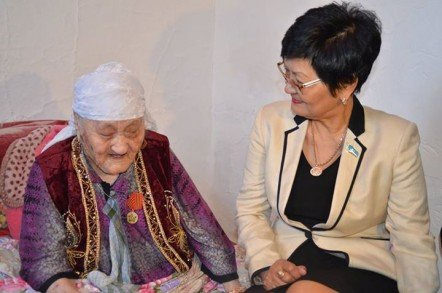 Ғасыр жасаған абзал аналармен аудан басшылығы емен-жарқын сөйлесіп, сый-сияпат жасады. Өздеріне көрсеткен сый-құрметке абыз аналар аудан басшысына ризашылықтарын жеткізіп, "біздің жасымызды берсін бәріңе. Әр жанұяға амандық тілеймін. Бейбіт күнде ғұмыр кешіңдер, қарақтарым ",- деп баталарын берді.