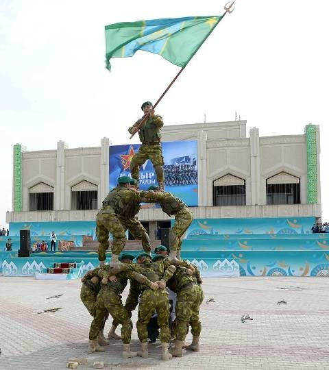 Сонымен қатар орталық алаңда сарбаздардың қоян-қолтық ұрыс көріністерін көрсетті. Мұнан соң облыс тұрғындары лэд экран арқылы Астанадағы мерекелік шеруді тамашалады.