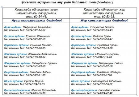ҚЫЗЫЛОРДА ОБЛЫСЫНЫҢ АУЫЛ ШАРУАШЫЛЫҒЫ ЖЕР ПАЙДАЛАНУШЫЛАРЫ НАЗАРЫНА!!!